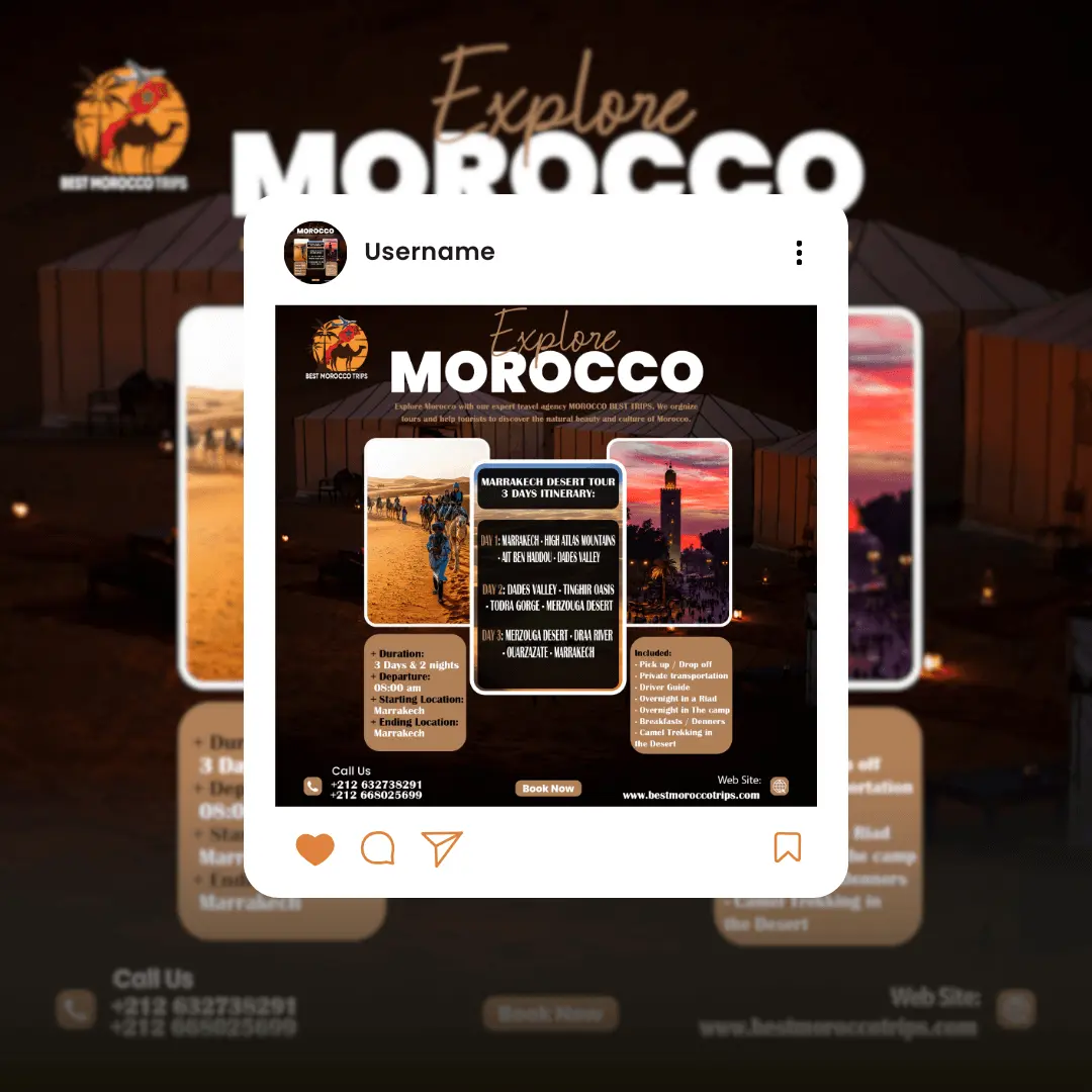 - Morocco Best Tours: design of flyers, brochures and digital ads